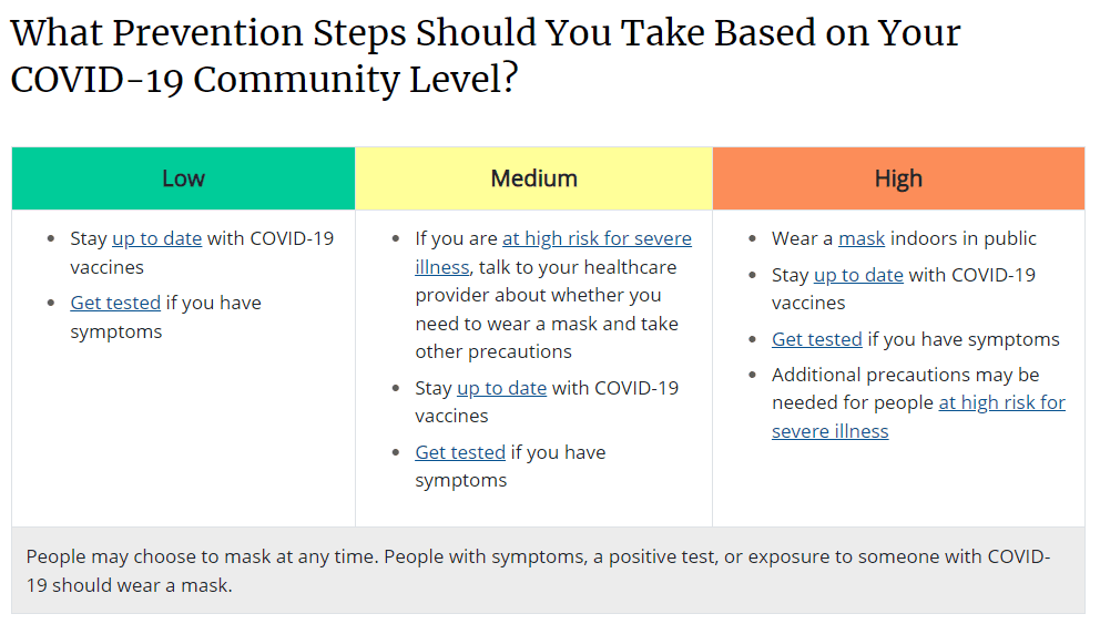 Polk County is currently in the “Low” COVID-19 Community Level and the CDC’s current recommendations are: